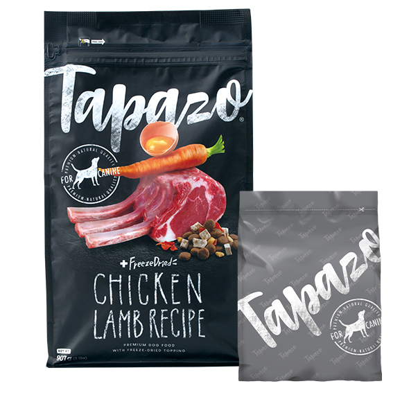 乾燥羊肉、乾鷹嘴豆、馬鈴薯粉、乾豌豆、豌豆粉、雞脂(以混合生育酚保存)、乾燥雞肉、乾燥甜菜根(天然調味料、豌豆纖維、乾燥鮭魚、鮭魚油(以混合生育酚保存)、乾燥番茄粕、食鹽、研磨亞麻籽、乾燥雞蛋、啤酒酵母萃取物、氯化膽鹼、乾燥菊苣根(菊苣纖維與果寡糖之來源)、維生素E、維生素A、維生素D3、維生素B12、維生素C、核黃素(維生素B2)、硫胺素(維生素B1)、葉酸、生物素(維生素B7)、鹽酸吡哆醇(維生素B6)、菸鹼酸(維生素B3)、維生素K、胡蘿蔔素、泛酸鈣(維生素B5)、硫酸銅、碘酸鈣、硫酸鐵、氧化錳、氧化鋅、亞硒酸鈉、蛋白質螯合銅、蛋白質螯合鐵、蛋白質螯合鋅、蛋白質螯合錳、牛磺酸、DL-鉀硫氨酸、蕬蘭萃取精華、L-抗壞血酸-2-聚磷酸鹽(維生素C活性來源)、鹽酸鹽葡萄糖胺、左旋肉鹼、軟骨素、肌醇(維生素B8)、嗜酸乳桿菌、乾酪乳桿菌、比菲德氏菌、腸球F菌)