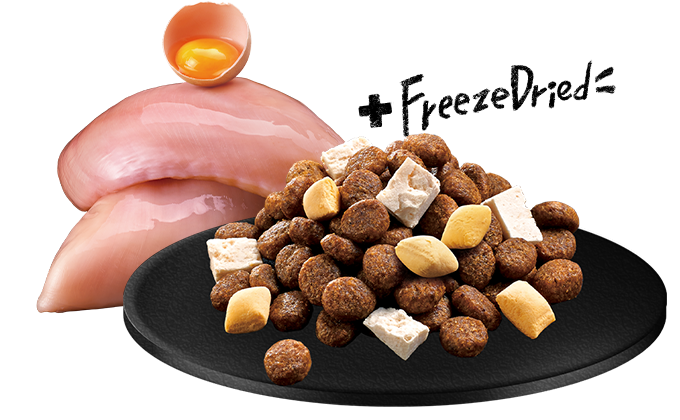 嚴選大塊雞肉與鮮蛋凍乾,鬆脆口感,美味加倍