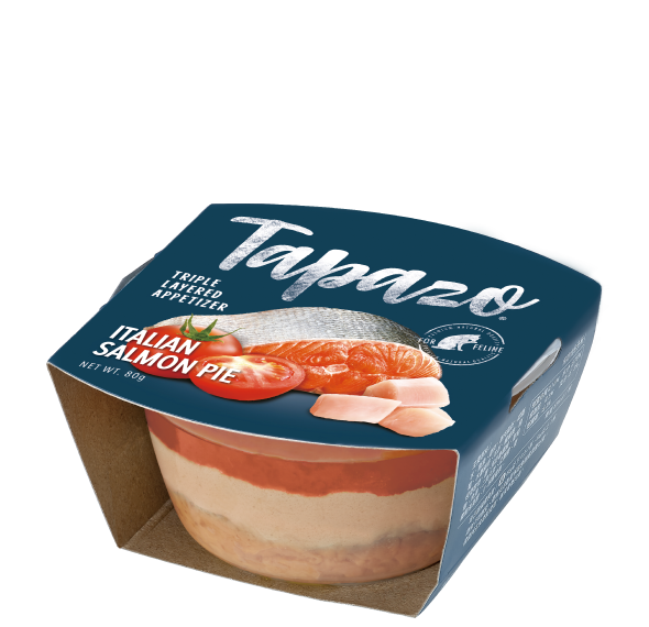 HOME > MENU FOR PETS > 貓 / 開胃三層杯 / 義式烤鮭魚派 Italian Salmon Pie 義式烤鮭魚派全齡貓 獨家三層美味,集合肉絲與肉餅的的雙重口感,層層堆疊的味蕾饗宴 優質肉品打造雙重口感,搭配蔬果精燉醬汁,適合當日常點心或佐餐享用 義大利特有燉番茄風味,搭配上鮮嫩肥美的鮭魚,充滿熱情的開胃料理,讓貓咪也熱情待你! 義式燉番茄+多汁雞肉餅+嚴選鮮鮭魚 80g/杯 主要原料 水、雞肉、鮭魚、雞肉脂肪、木薯澱粉、番茄、牛肝、蔬菜纖維、酵母萃取物、鹽、纖維素粉、葡萄糖、魚湯、愛爾蘭海藻膠、二氧化鈦、瓜爾膠 成份分析保證值 粗蛋白質 ≧ 8.00% 粗脂肪 ≧ 3.00% 粗纖維 ≦ 4.00% 水份 ≦ 78.00% 灰份 ≦ 4.00% 熱量 75kcal/杯 < 返回產品清單瀏覽下個產品 >