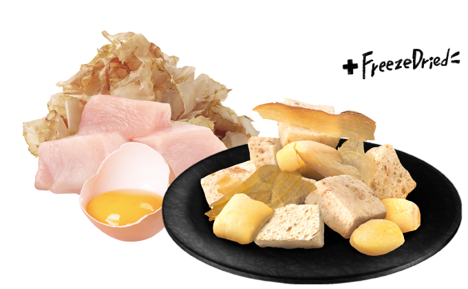 HOME > MENU FOR PETS > 貓 / 凍乾佐餐杯 / 雞肉+柴魚+雞蛋 Chicken + Bonito Flake + Egg 雞肉+柴魚+雞蛋全齡貓 每餐配一杯 晚餐大升級 多樣食材組合 多重食感體驗 柴魚佐雞蛋 好吃一直吃 一盒5杯/一杯7g 主要原料 凍乾雞肉、凍乾雞蛋、柴魚花 成份分析保證值 粗蛋白質 ≧ 36.3% 粗脂肪 ≧ 2.5% 粗纖維 ≦ 2.4% 水份 ≦ 5.0% 灰份 ≦ 5.3% 熱量 24.7kcal/杯 < 返回產品清單瀏覽下個產品 >