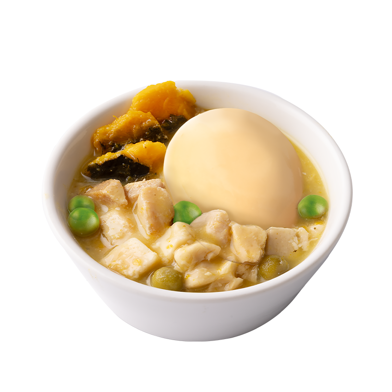鮮雞蛋、雞高湯、鮮雞肉、南瓜、豌豆、起司、碳酸鈣、磷酸氫鈣、魚油、磷酸鈣、氧化鎂、維生素 C、焦磷酸鐵、維生素 E、菸鹼醯胺、氧化鋅、三氯化鉻、硫酸錳、碘化鉀、硫酸銅、維生素 A、維生素 B5、葉酸、生物素 、維生素 B12、維生素 B6、維生素 D3、維生素 B1、維生素 B2、膽鹼