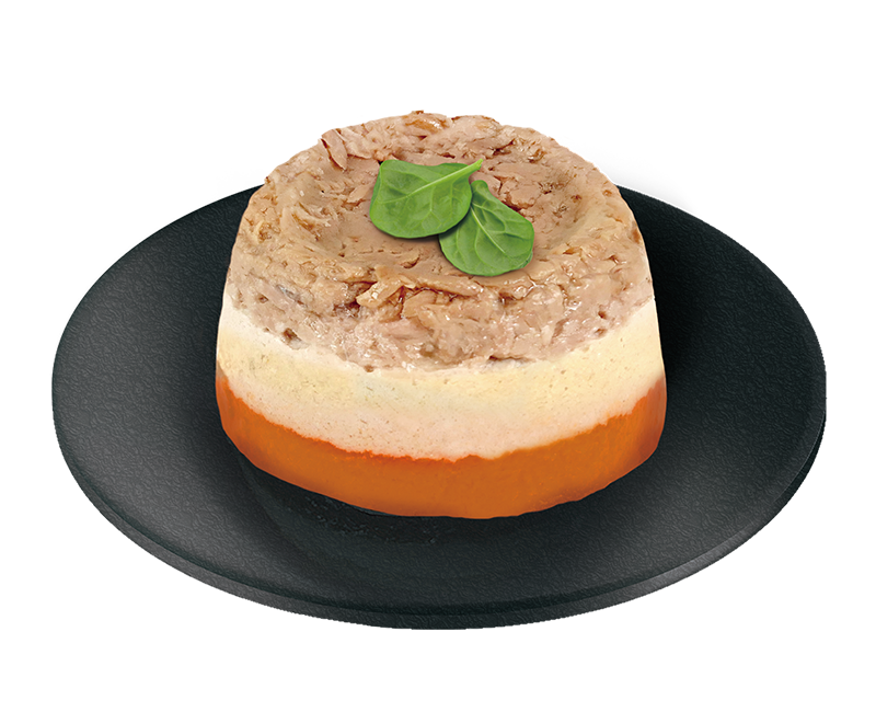 水、雞肉、鮪魚、蟹肉棒、雞肉脂肪、起司、番茄、木薯澱粉、牛肝、蔬菜纖維、酵母萃取物、鹽、纖維素粉、葡萄糖、魚湯、愛爾蘭海藻膠、二氧化鈦、瓜爾膠